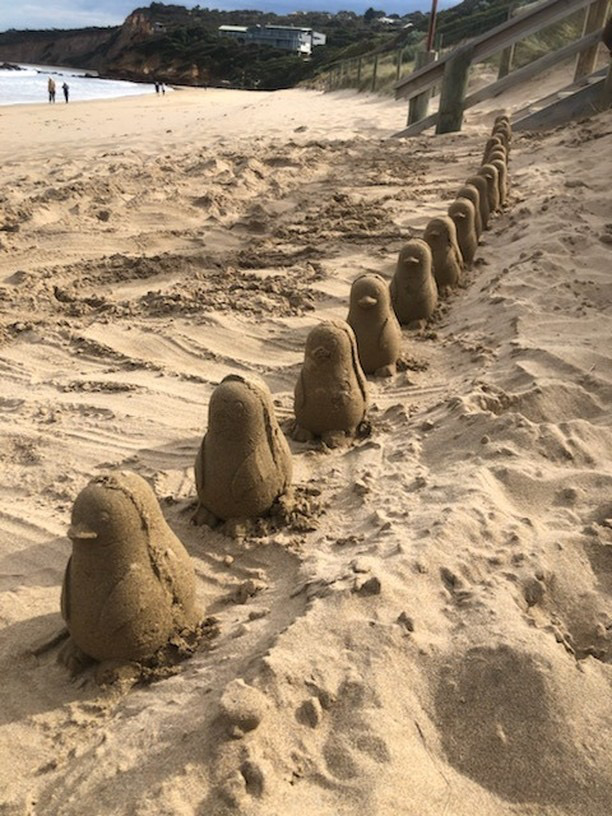 She has since created around 100 of the ‘Sand Penguins’ on the main beach in Anglesea and has brought many a smile to locals & tourists alike.
