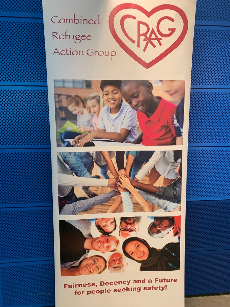 “We dedicate this exhibition to the refugees and people seeking asylum who have sought safety and a new life in our community.” Love from CRAG. Thanks CRAG, for all that you do. To help out, please contact CRAG on Combinedrefugeeactiongroup@gmail.com