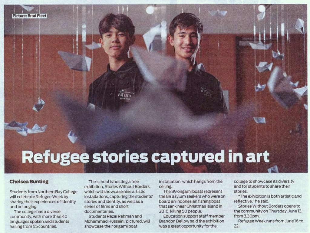 Last Thursday, Rezai and other students at Northern Bay College came together to host an art exhibition and film festival celebrating the start of Refugee Week.”It was a great event because the wider community came together to see the lives of refugees who are living in their own backyard. Events like this are important for our community to show understanding and to put a spotlight on some of the experiences.Stories WIthout Borders, which was the name of our event, really paid tribute to the 650 students at Northern Bay who come from a refugee or asylum seeker background.